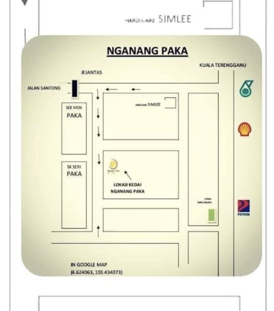 Alamat: Lot 3340 Jln Rambai, Kg Cacar, 23100 Paka Dungun Terengganu